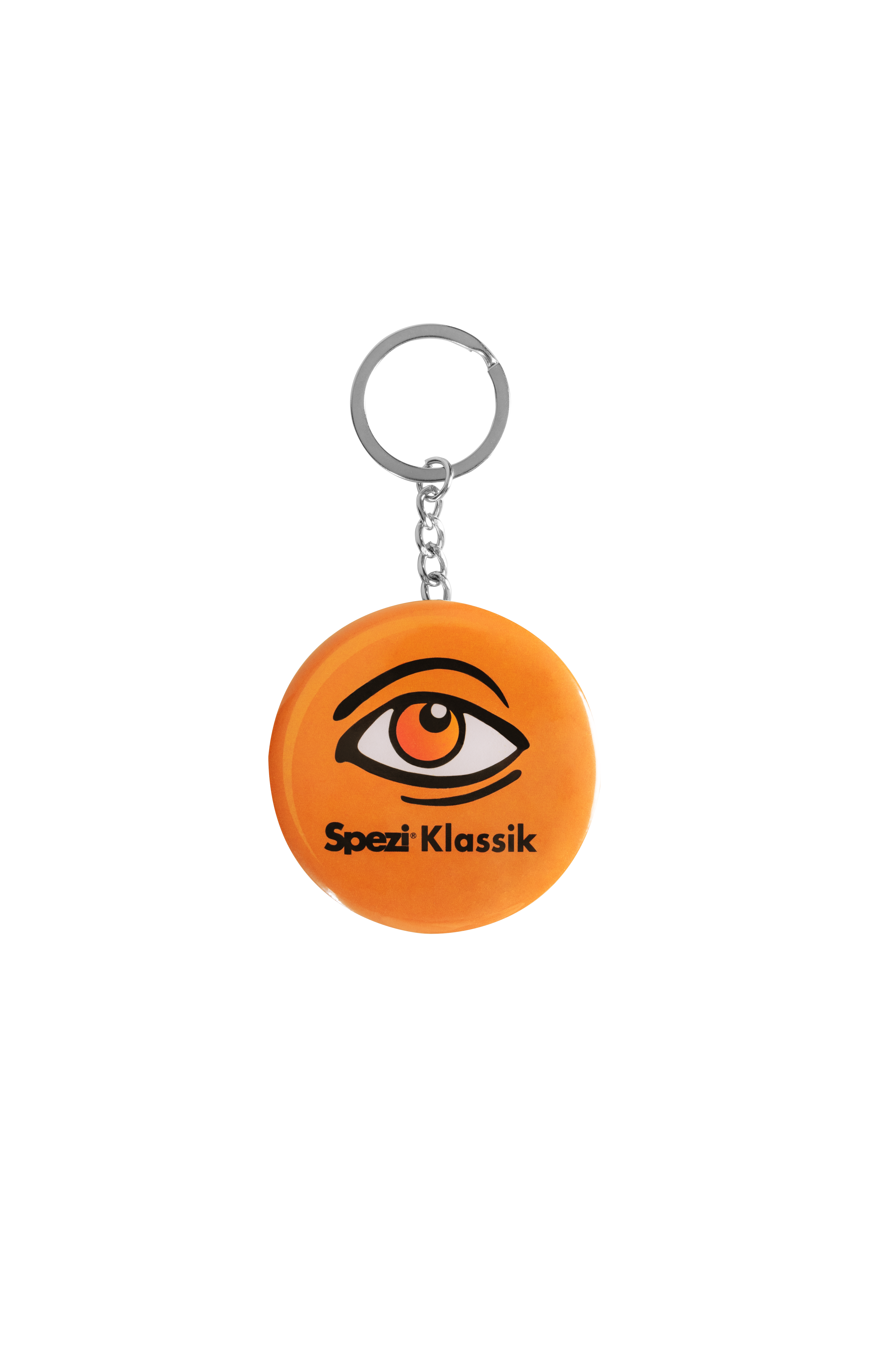 Kapselheber/Flaschenöffner rund in Spezi-Retro-Optik, Aufdruck "Auge", mit der Möglichkeit ihn am Schlüsselbund zu tragen.