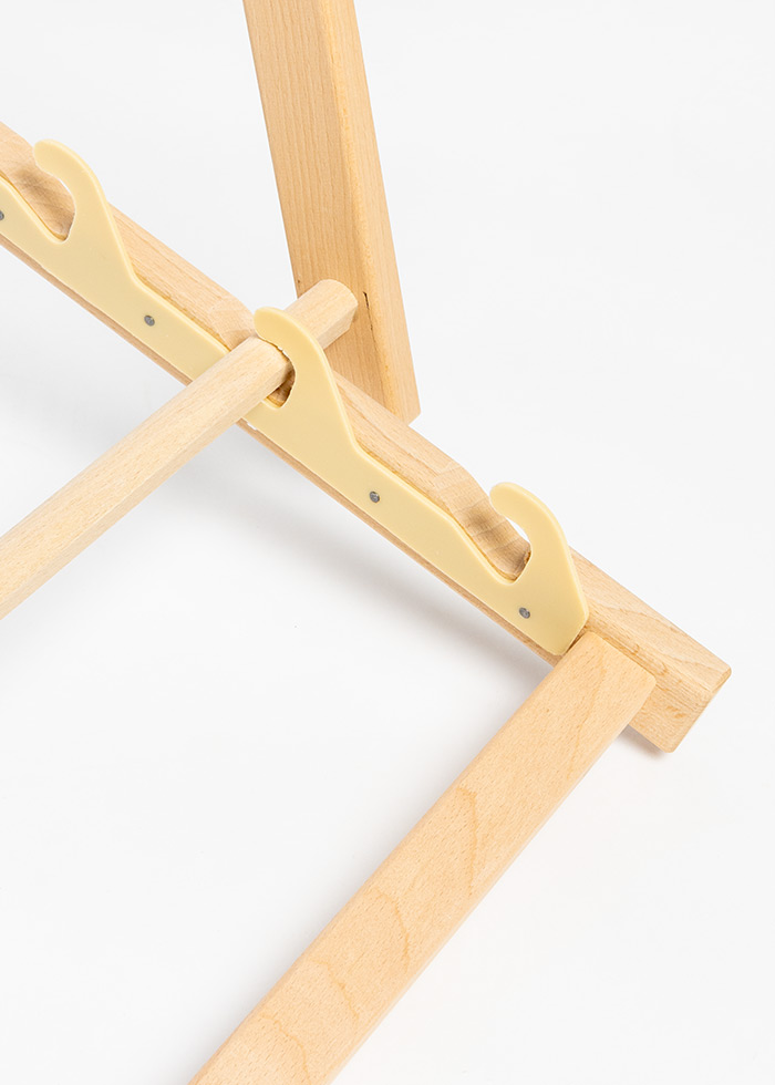 Die Stoffbespannung ist fest mit dem Holzgestell verbunden.