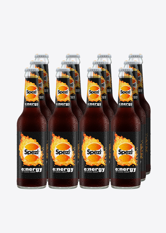Wasser, Glukose-Fruktose-Sirup, Zucker, Orangensaft aus Orangensaftkonzentrat (1,6%), Kohlensäure, Zitronensaft aus Zitronensaftkonzentrat (0,6%), Säuerungsmittel Citronensäure und Phosphorsäure, Farbstoff E 150d, Säureregulator Natriumcitrate, Aroma, Koffein (0,03%), Taurin (0,02%), Vitaminmischung (Niacin, Pantothenat, Vitamin B6, Vitamin B12), konzentrierter Citrusextrakt, Stabilisator Johannisbrotkernmehl